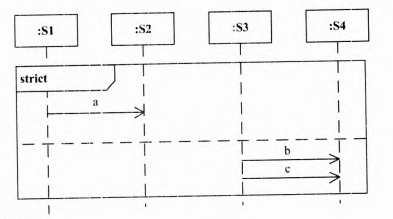 UML序列图是业务场景的图形化表示,描述了以(41)顺序组织的对象之间的交互活动。某系统中的一个UML序列图如下图所示,则消息序列(42)可能发生。