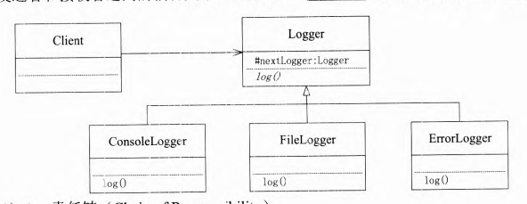 在某系统中,不同级别的日志信息记录方式不同,每个级别的日志处理对象根据信息级别高低,采用不同方式进行记录。每个日志处理对象检查消息的级别,如果达到它的级别则进行记录,否则不记录然后将消息传递给它的下一个日志处理对象。针对此需求,设计如下所示类图。该设计采用(44)模式使多个前后连接的对象都有机会处理请求,从而避免请求的发送者和接收者之间的耦合关系。该模式属于(45)模式,该模式适用于(46)模式。