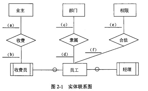 根据需求阶段收集的信息,设计的实体联系图(不完整)如图2-1所示。图2-1中收费员和经理是员工的子实体。