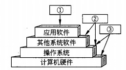 操作系统是裸机上的第一层软件,其他系统软件(如 (23) 等)和应用软件都是建立在操作系统基础上的。下图①②③分别表示 (24)。