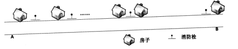在一条笔直公路的一边有许多房子,现要安装消防栓,每个消防栓的覆盖范围远大于房子的面积,如下图所示。现求解能覆盖所有房子的最少消防栓数和安装方案(问题求解过程中,可将房子和消防栓均视为直线上的点)。