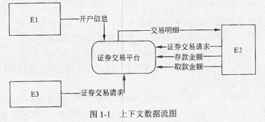 阅读下列说明,回答问题1至问题4,将解答填入答题纸的对应栏内。 【说明】 某证券交易所为了方便提供证券交易服务,欲开发一证券交易平台,该平台的主要功能如下: (1)开户。根据客户服务助理提交的开户信息,进行开户,并将客户信息存入客户记录中,账户信息(余额等)存入账户记录中; (2)存款。客户可以向其账户中存款,根据存款金额修改账户余额; (3)取款。客户可以从其账户中取款,根据取款金额修改账户余额; (4)证券交易。客户和经纪人均可以进行证券交易(客户通过在线方式,经纪人通过电话),将交易信息存入交易记录中; (5)检查交易。平台从交易记录中读取交易信息,将交易明细返回给客户。 现采用结构化方法对该证券交易平台进行分析与设计,获得如图1-1所示的上下文数据流图和图1-2所示的0层数据流图。