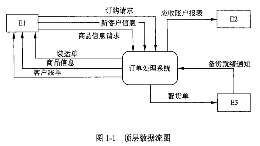 某时装邮购提供商拟开发订单处理系统,用于处理客户通过电话、传真、邮件或Web站点所下订单。其主要功能如下: (1)增加客户记录。将新客户信息添加到客户文件,并分配一个客户号以备后续使用。 (2)查询商品信息。接收客户提交的商品信息请求,从商品文件中查询商品的价格和可订购数量等商品信息,返回给客户。 (3)增加订单记录。根据客户的订购请求及该客户记录的相关信息,产生订单并添加到订单文件中。 (4)产生配货单。根据订单记录产生配货单,并将配货单发送给仓库进行备货;备好货后,发送备货就绪通知。如果现货不足,则需向供应商订货。 (5)准备发货单。从订单文件中获取订单记录,从客户文件中获取客户记录,并产生发货单。 (6)发货。当收到仓库发送的备货就绪通知后,根据发货单给客户发货;产生装运单并发送给客户。 (7)创建客户账单。根据订单文件中的订单记录和客户文件中的客户记录,产生并发送客户账单,同时更新商品文件中的商品数量和订单文件中的订单状态。 (8)产生应收账户。根据客户记录和订单文件中的订单信息,产生并发送给财务部门应收账户报表。 现采用结构化方法对订单处理系统进行分析与设计,获得如图1-1所示的顶层数据流图和图1-2所示的0层数据流图。