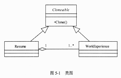 【说明】 现要求实现一个能够自动生成求职简历的程序。简历的基本内容包括求职者的姓名、性别、年龄及工作经历等。希望每份简历中的工作经历有所不同,并尽量减少程序中的重复代码。 现采用原型(Prototype)模式来实现上述要求,得到如图5-1所示的类图。