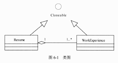 【说明】 现要求实现一个能够自动生成求职简历的程序。简历的基本内容包括求职者的姓名、性别、年龄及工作经历等。希望每份简历中的工作经历有所不同,并尽量减少程序中的重复代码。 现采用原型(Prototype)模式来实现上述要求,得到如图6-1所示的类图。