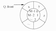设循环队列Q的定义中有front和size两个域变量,其中front表示队头元素的指针,size表示队列的长度,如下图所示(队列长度为3,队头元素为x、队尾元素为z)。设队列的存储空间容量为M,则队尾元素的指针为(58)。