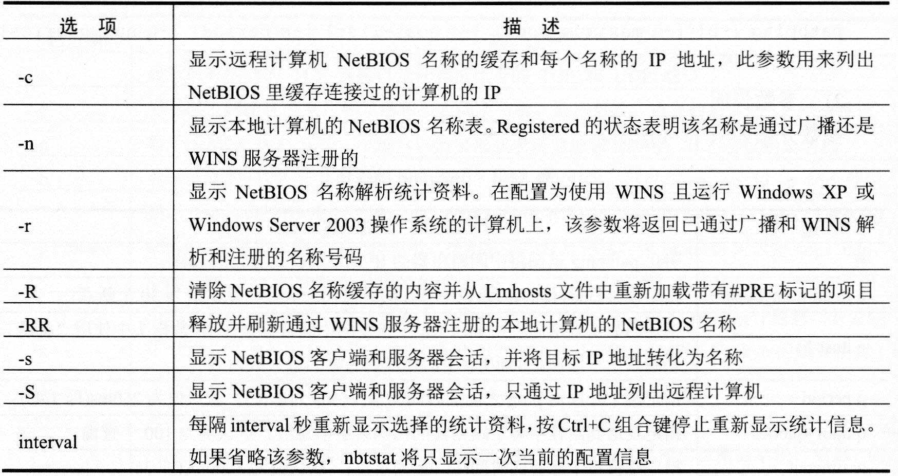 nbtstat参数介绍如下表所示。