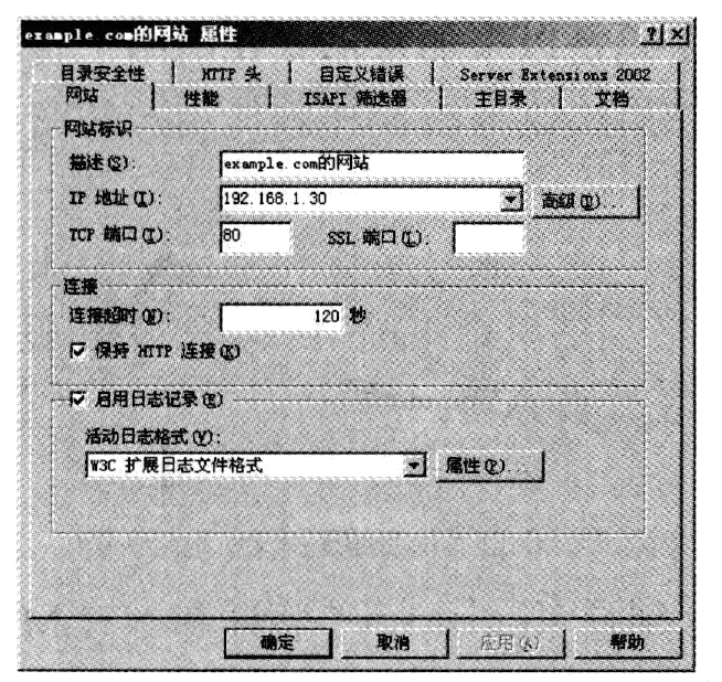 在"网站"选项卡中可以设置网站的标识,包括网站描述、IP地址和端口号,还可以设置连接超时、启用日志记录等,从网站日志记录中可以查看哪些用户访问了网站中的哪些内容,如下图所示。