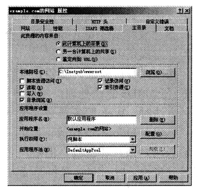在"主目录"选项卡中指定网站Web内容的来源,如下图所示。