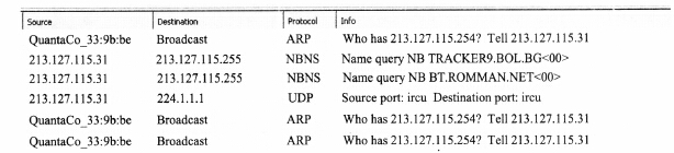 PC机不能接入因特网,这时采用抓包工具捕获的以太网接口发出的信息如下: