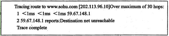 一台主机的浏览器无法访问域名为www.sohu.com的网站,并且在这台计算机执行tracert命令时有如下信息: