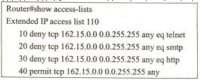 访问控制列表(ACL)配置如下,如果来自因特网的HTTP报文的目标地址是162.15.10.10,经过这个ACL过滤后会出现什么情况?(58)。