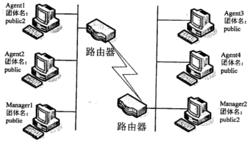 SNMP定义了管理进程(Manager)和管理代理(Agent)之间的关系,这个关系被称为共同体(Community)。描述共同体的语义是非常复杂的,但其句法却很简单。位于网络管理工作站(运行管理进程)和各网络元素上,利用SNMP相互通信,并对网络进行管理的软件统称为SNMP应用实体。若干个应用实体和SNMP组合起来形成一个共同体,不同的共同体之间用名字来区分。共同体的名字必须符合Internet的层次结构命名规则,由非保留字符串组成。此外,一个SNMP应用实体可以加入多个共同体。