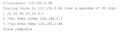 使用tracert命令进行网络检测,结果如下图所示,那么本地默认网关地址是(64)。