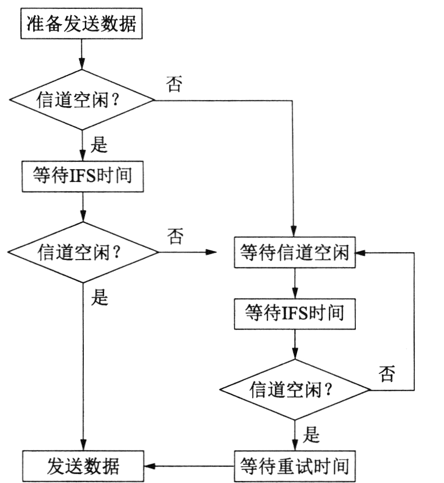 CSMA/CA协议的工作原理如下图所示。