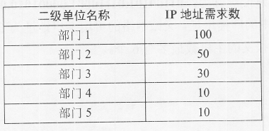 某单位IP地址需求数如下表所示,给定地址192.168.1.0/24 ,按照可变长子网掩码的设计思想,部门3的子网掩码为( )。