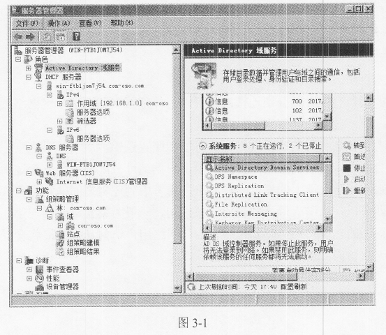 (共8分) 图3-1是安装好的服务器管理器界面,在当前配置下,根域的名称是(1)。