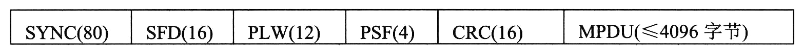SYNC是0和1的序列,共80比特作为同步信号。SFD的比特模式为0000110010111101,用作帧的起始符。PLW代表帧的长度,共12位,所以帧最大长度可以达到4096字节。PSF是分组信令字段,用来标识不同的数据速率。起始数据速率为1Mb/s,以0.5的步长递增。PSF=0000时,代表数据速率为1Mb/s;PSF为其他数值时,则在起始速率的基础上增加一定倍数的步长,例如PSF=0010,则1Mb/s+0.5Mb/s×2=2Mb/s。16位的CRC是为了保护PLCP头部所加的,它能纠正2比特错。MPDU代表MAC协议数据单元。