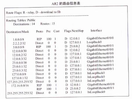 下图所示的网络拓扑中配置了RIP协议,且RIP协议已更新完成,下表所示为AR2路由器上查看到的路由信息。