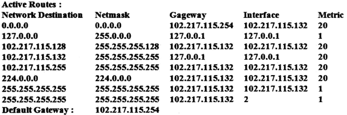 在Windows中运行route print命令后得到某主机的路由信息如下图所示。则该主机的IP地址为(49),子网掩码为(50),默认网关为(51)。