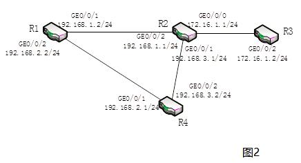 下图1所示是图2所示网络发生链路故障时的部分路由信息,该信息来自设备(57),发生故障的接口是(58)。