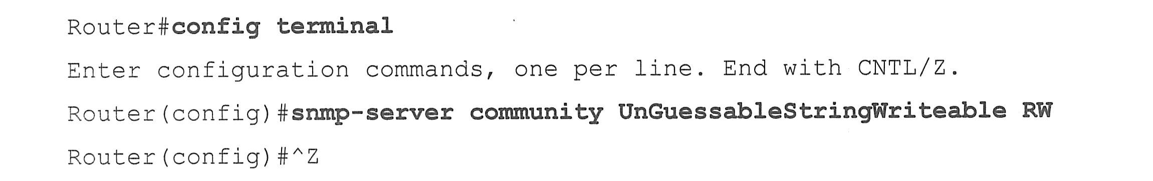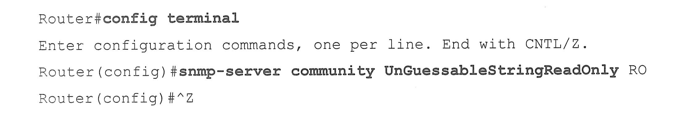 一是SNMP访问认证。当通过SNMP访问网络设备时,网络设备要求访问者提供社区字符串(community strings)认证,类似口令密码。如下所示,路由器设置SNMP访问社区字符串。