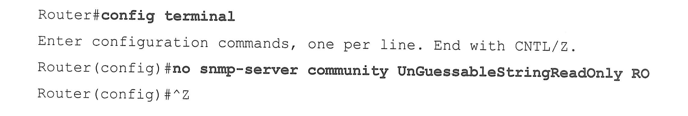 三是关闭SNMP访问。如下所示,网络设备配置no snmp-server community命令关闭SNMP访问。