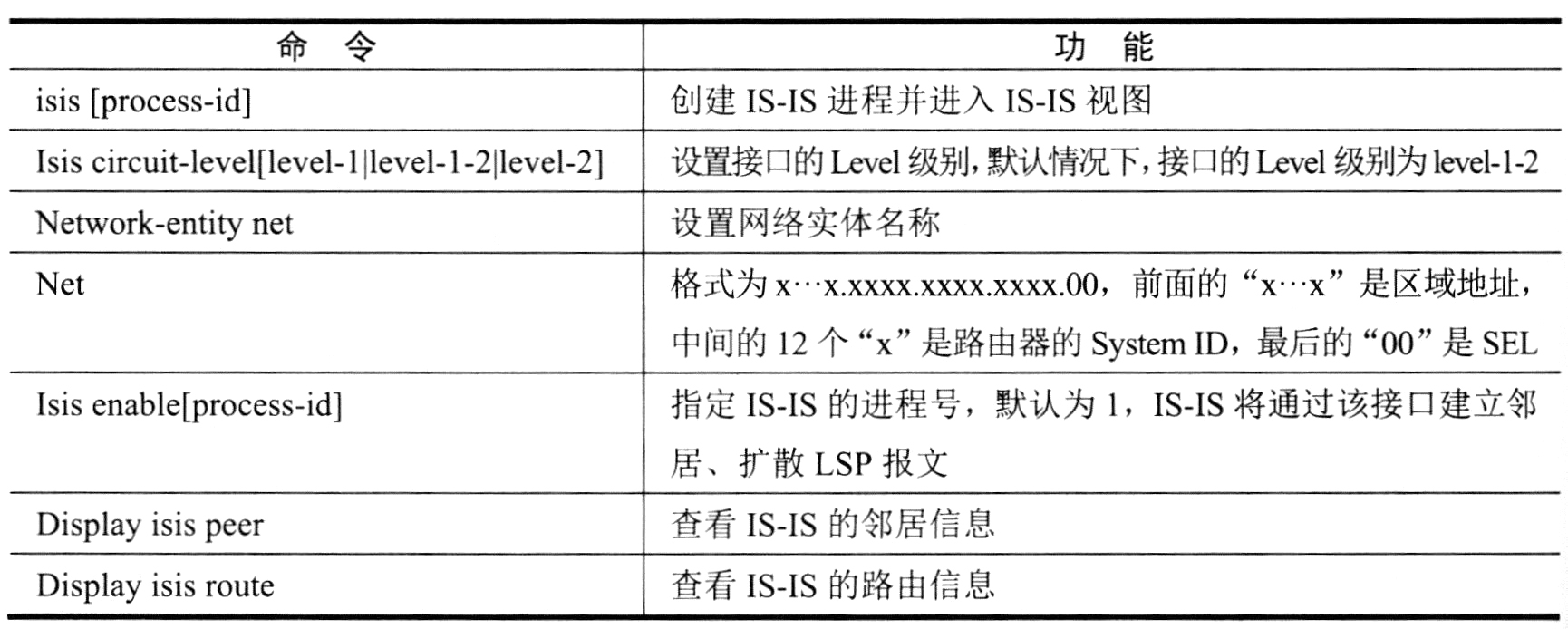 IS-IS是一种链路状态路由协议,每一台路由器都会生成一个LSP,它包含了该路由器所有启用IS-IS协议接口的链路状态信息。通过跟相邻设备建立IS-IS邻接关系,互相更新本地设备的LSDB,可以使得LSDB与整个IS-IS网络的其他设备的LSDB实现同步。然后根据LSDB运用SPF算法计算出IS-IS路由。如果此IS-IS路由是到目的地址的最优路由,则此路由会下发到IP路由表中,并指导报文的转发。其相关命令如下表所示。