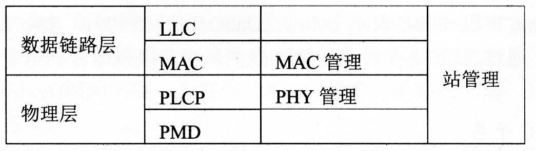 MAC层分为MAC子层和MAC管理子层。MAC子层负责访问和分组拆装,MAC管理子层负责ESS漫游、电源管理和登记过程中的关联管理。物理层分为物理层汇聚协议(Physical Layer Convergence Protocol, PLCP)、物理介质相关(Physical Medium Dependent, PMD)子层和PHY管理子层。PLCP子层主要进行载波监听和物理层分组的建立,PMD子层用于传输信号的调制和编码,而PHY管理子层负责选择物理信道和调谐。