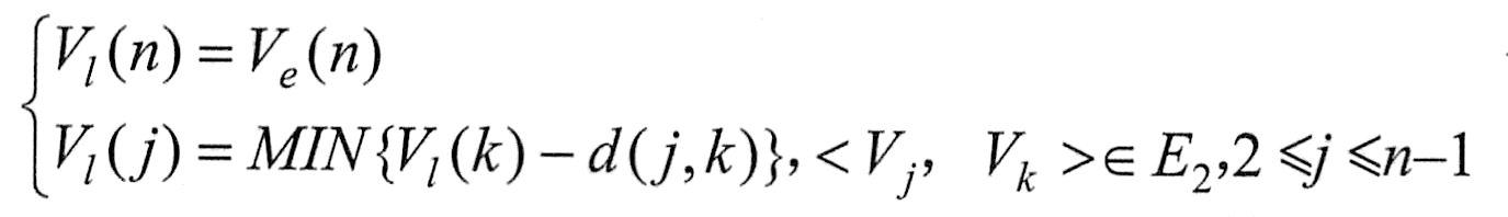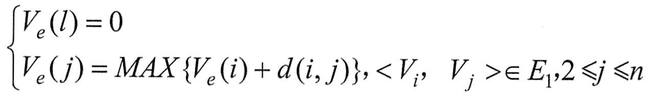从源点Vl到某顶点Vj的最长路径长度称为事件Vj的最早开始时间,记做Vej)。Vej)也是以Vj为起点的出边<VjVk>所表示的活动ai的最早开始时间ei)。