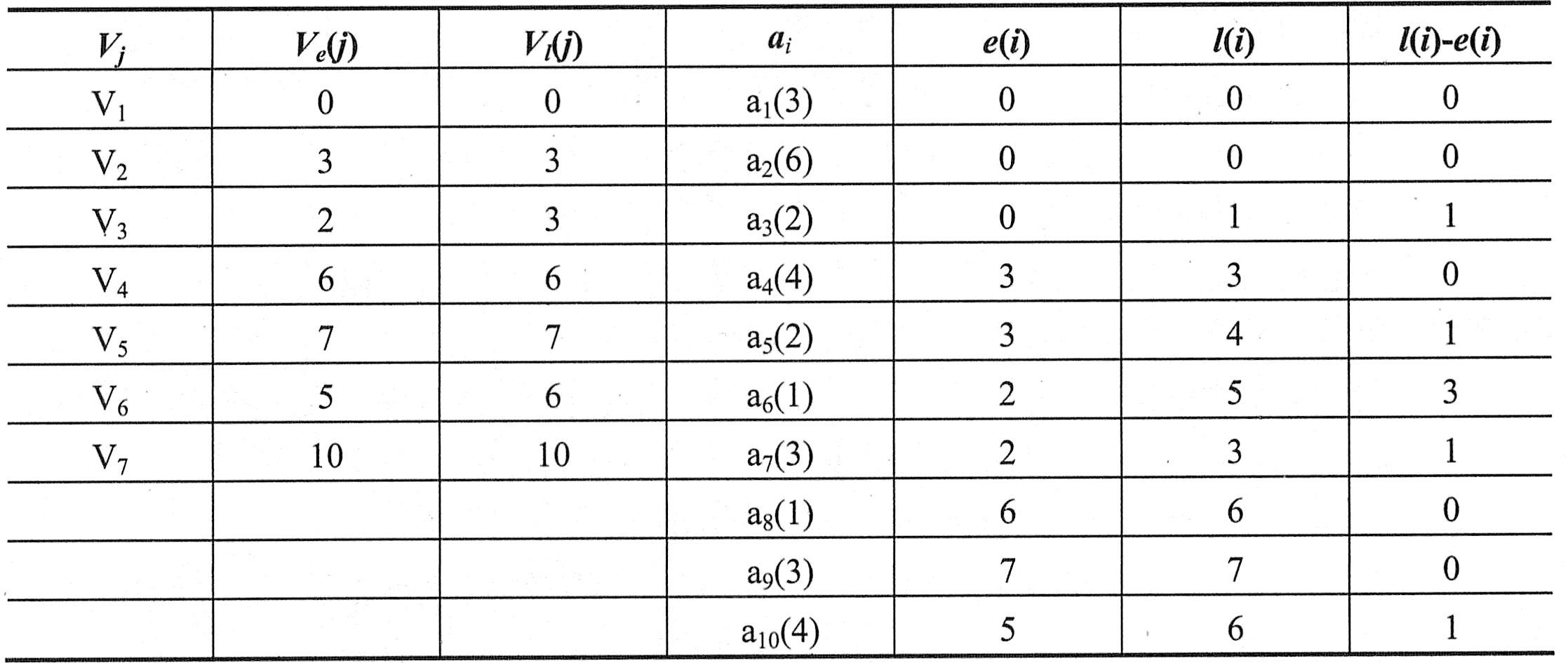 .Vej)、Vlj):顶点j事件最早开始时间、最迟开始时间。
