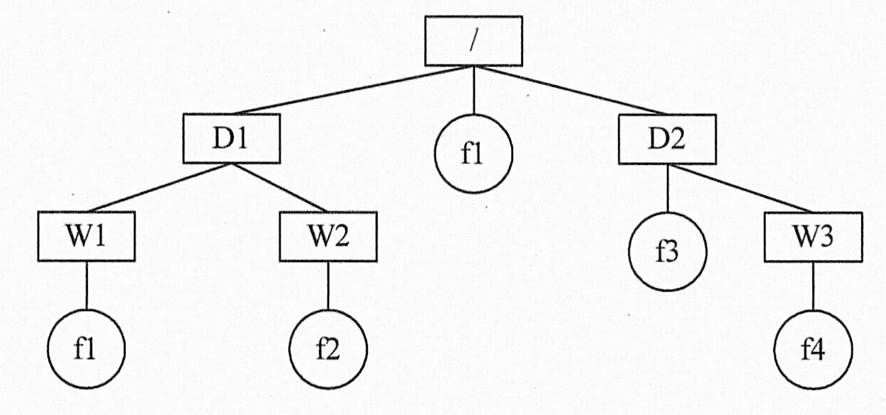 对文件进行访问时,需要用到路径的概念。路径是指从树型目录中的某个目录层次到某个文件的一条道路。在树型目录结构中,从根目录到任何数据文件之间只有一条唯一的通路,从树根开始,把全部目录文件名与数据文件名依次用“/”连接起来就构成该数据文件的路径名。每个数据文件的路径名都是唯一的。这样,可以解决文件重名问题,不同路径下的同名文件不一定是相同的文件。例如,在上图中,根目录下的文件f1和/D1/W1目录下的文件f1可能是相同的文件,也可能是不同的文件。