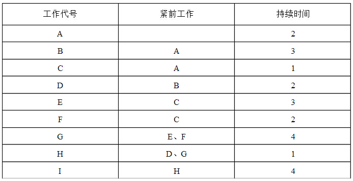 要求一个网络图的关键路径,一般需要根据以上变量列出一张表格,逐个检查。例如,求下图所示的网络图中关键路径的表格如下表所示。
