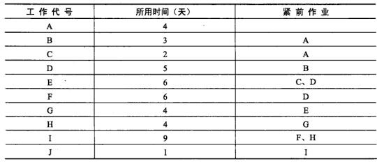 某工程有10项工作,其相互的依赖关系如下表所示,则双代号网络计划绘制正确的是(50),其关键路径时间为(51)天。