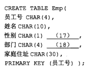 设有员工关系Emp(员工号,姓名,性别,部门,家庭住址),其中,属性“性别”的取值只能为M或F;属性“部门”是关系Dept的主键。要求可访问“家庭住址”的某个成分,如邮编、省、市、街道以及门牌号。关系Emp的主键和外键分别是(15)。“家庭住址”是一个(16)属性。创建Emp关系的SQL语句如下:
