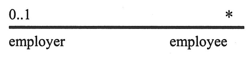②关联(association)是一种结构关系,它描述了一组链,链是对象之间的连接。聚合是一种特殊类型的关联,它描述了整体和部分间的结构关系。在图形上,把一个关联画成一条实线,它可能有方向,偶尔在其上还有一个标记,而且它经常还含有诸如多重性和角色名这样的修饰,如下图所示。