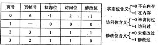 进程有4个页面,页号为0~3,页面变换表及状态位、访问位和修改位的含义如下图所示。若系统给该进程分配了3个存储块,当访问的页面1不在内存时,应该淘汰表中页号为(20)的页面的系统代价最小。