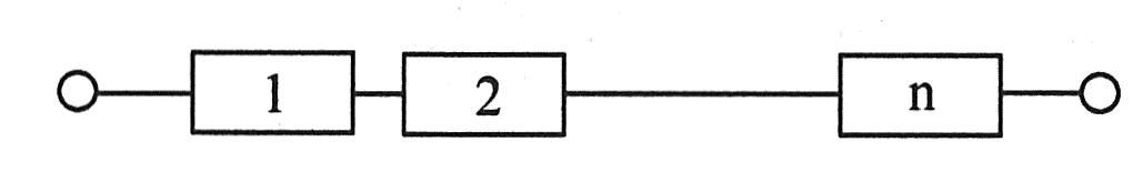 串联系统是组成系统的所有单元中任一单元失效就会导致整个系统失效的系统。下图为串联系统的可靠性框图。假定各单元是统计独立的,则其可靠性数学模型为: