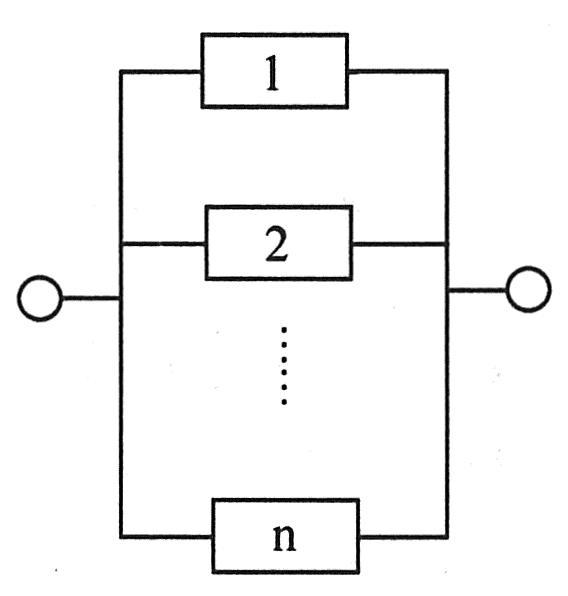 并联系统是组成系统的所有单元都失效时才失效的系统。下图为并联轴系统的可靠性框图。假定各单元是统计独立的,则其可靠性数学模型为