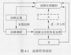 从故障监视的过程中发现故障到对故障信息地调研,再到故障的恢复处理和故障排除,形成了一个完整的故障管理活动。