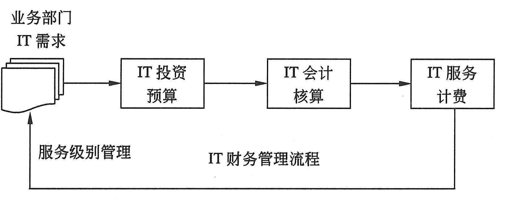 IT财务管理作为重要的IT系统管理流程,可以解决IT投资预算、IT成本、效益核算和投资评价等问题,从而为高层管理提供决策支持。因此,企业要走出“信息悖论”的沼泽,通过IT财务管理流程对IT服务项目的规划、实施和运作进行量化管理是一种有效的手段。