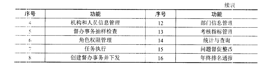 根据需求分析的结果,请将表 2-1中序号为1~16的功能模块区分出来,分别归入后台管理、任务管理、督办事务管理、综合统计及信息发布模块中,并填入答题纸对应的位置上,