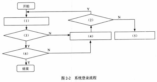 用户登录系统设计要求:当用户登录系统时,需要输入用户名和密码,若用户存在并且密码正确,则验证结束;若用户不存在或密码不正确,则显示用户名或密码错,然后判断登录次数是否小于3次,是则继续输入用户名和密码,否则显示登录失败信息。 根据用户登录系统的设计要求,设计的系统登录流程(不完整)如图2-2所示。