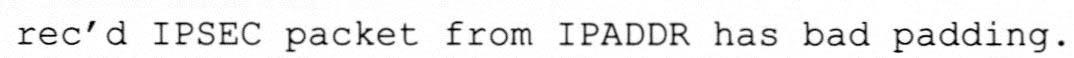 判断方法和解决方案:检查对端的outbound的加密密钥和本端的inbound的加密密钥,务必使两者相同。
