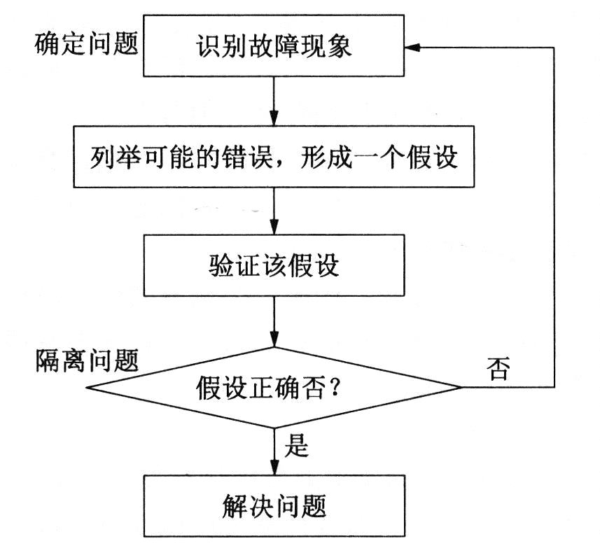 故障的定位过程是一个循环的过程。如果一个测试的结果没有得出结论,必须重新详细地分析该问题所表现出的现象,从而形成新的假设。在大多数情况下,需要在重新检查该现象之前,变换一下该问题的环境。