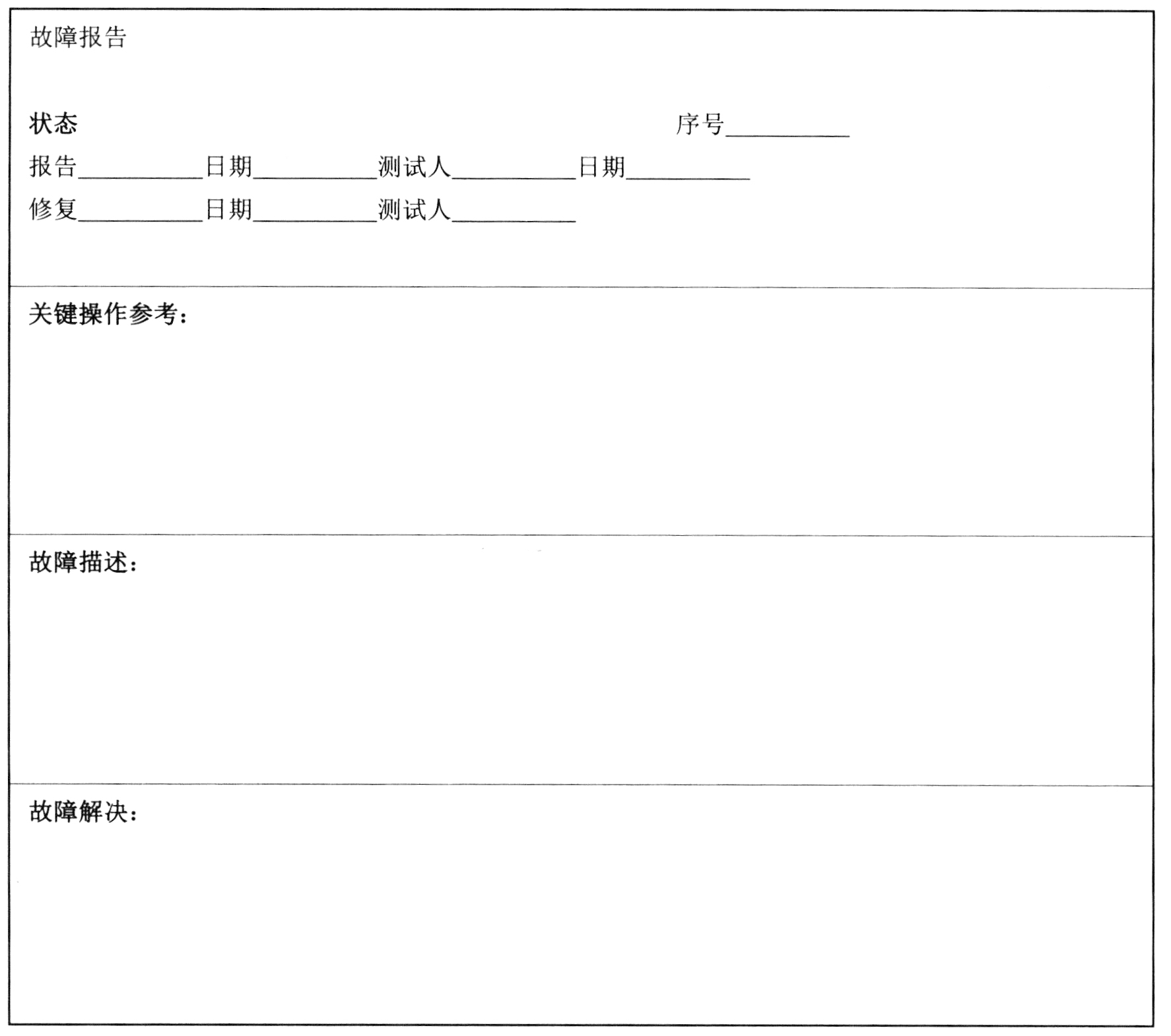 故障报告是反映网络系统出现故障情况及解决方法的文档,文档可以只是简单的文本形式,一页通常记录一个问题;可以使用数据库,这样便于交叉查找。下表所示为故障报告的一个简单样本,建立它或使用它都非常节省时间。