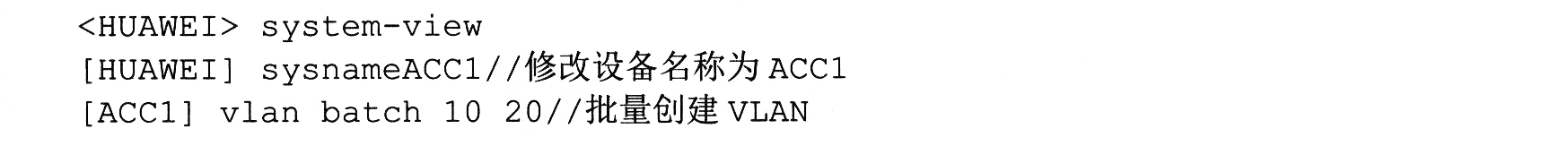 如果把ACC1下接入的用户都加入VLAN10,为了配置简单,也可以ACC1上不配置VLAN,而把CORE1、CORE2与ACC1直接相连的接口以access方式加入VLAN10,这样通过ACC1接入的用户全部属于VLAN10。