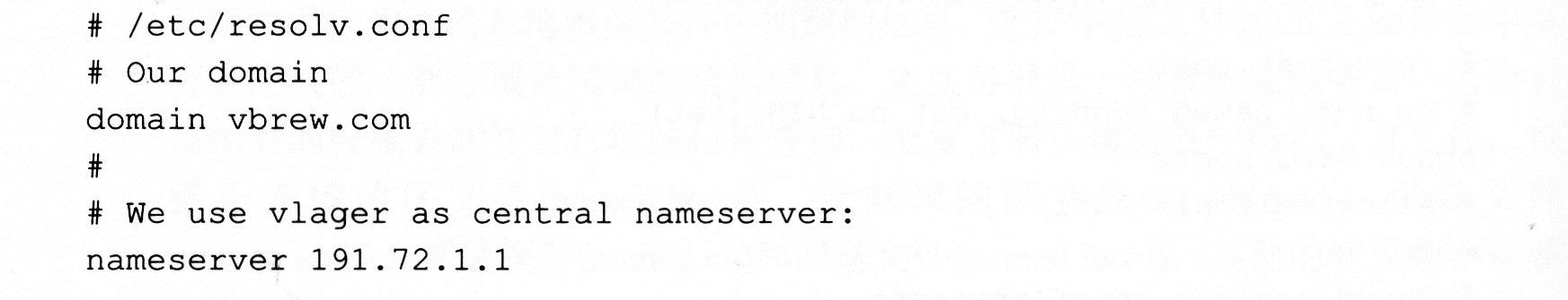 如果听起来让人迷惑不解,可以看看下面这个例子,这是Virtual Brewery中的resolv.conf文件。