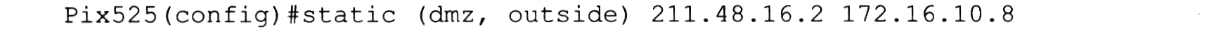 表示创建了DMZ的IP地址211.48.16.2和外部IP地址172.16.10.8之间的静态映射。