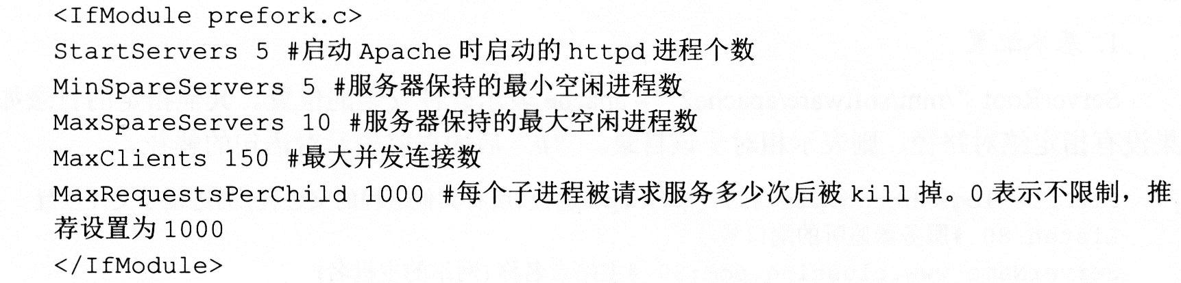 (1)prefork:如果httpd-1列出prefork.c,则需要对下面的段进行配置。